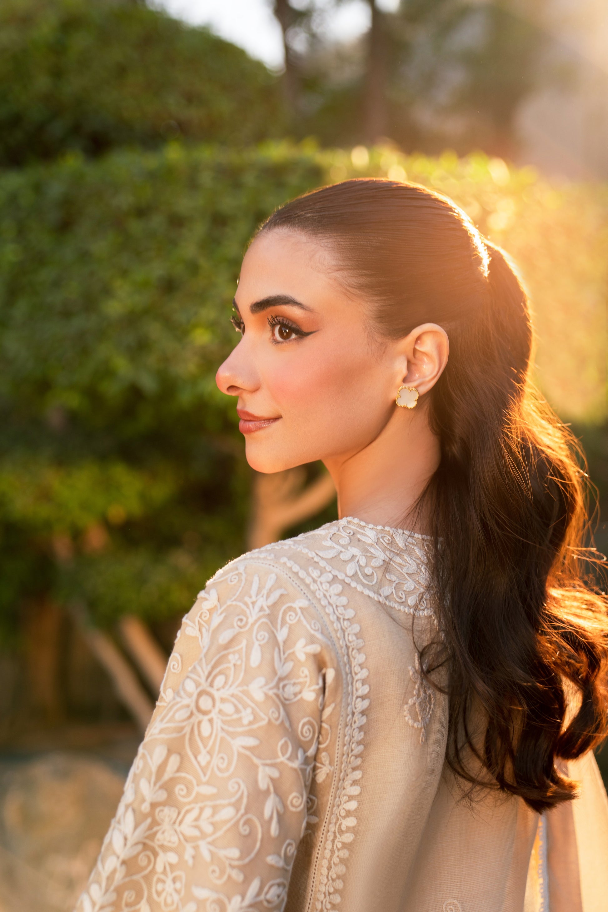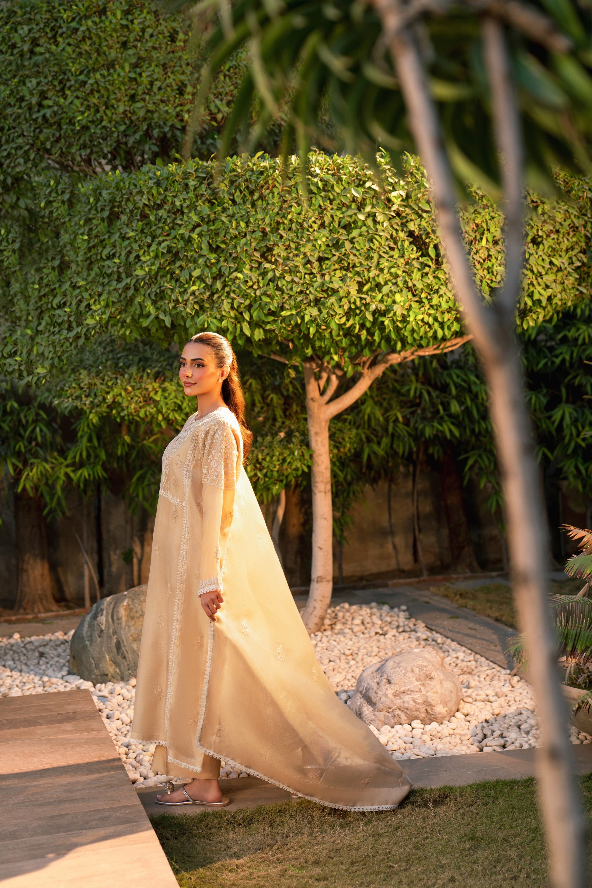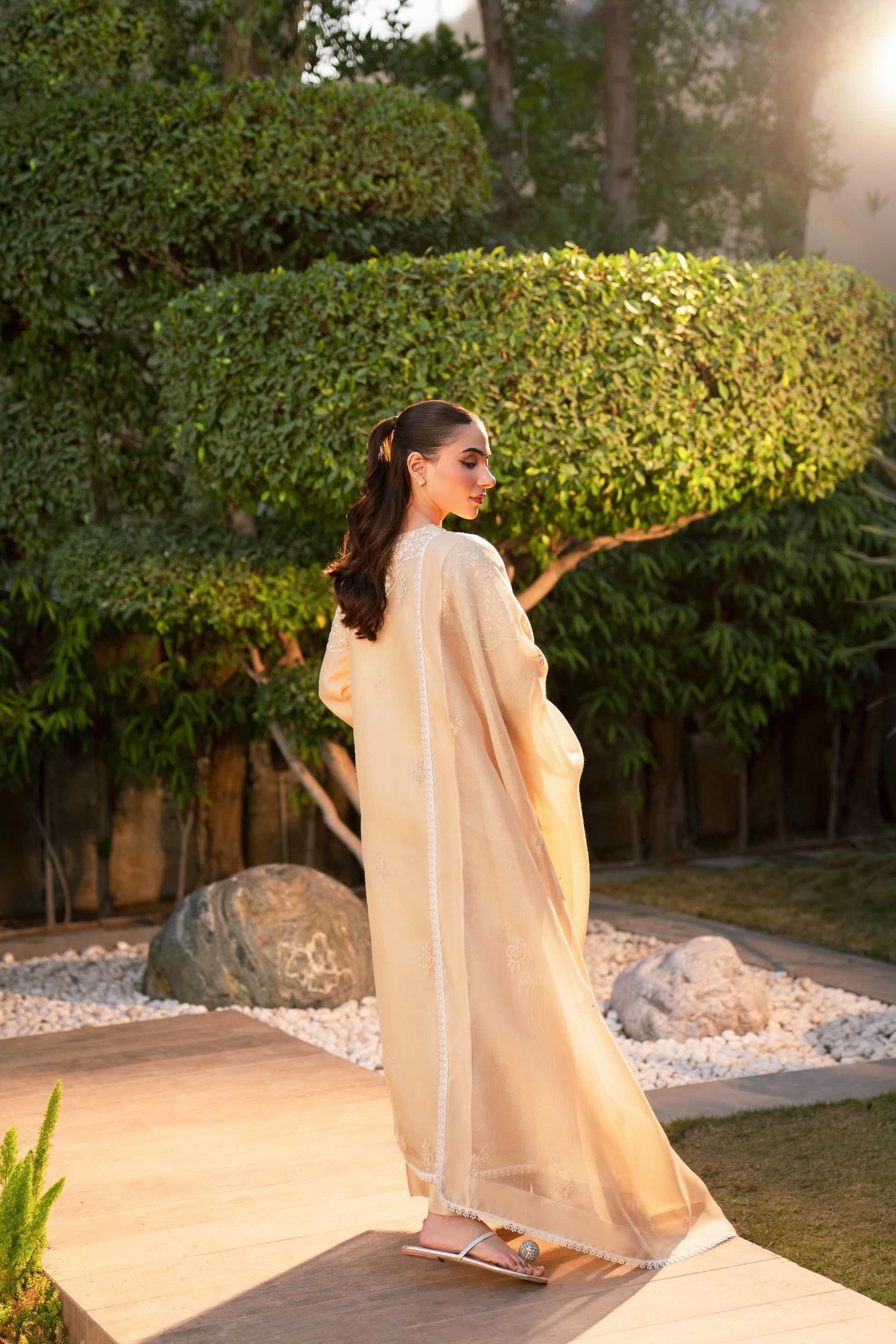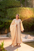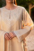 Miraaz evokes the idea of legacy fitting perfectly with the soft beige khaddi net fabric and the intricate embroidery. The matching dupatta adds a light touch, while the culottes (sold separately) offer a contemporary finish to the look.