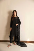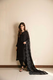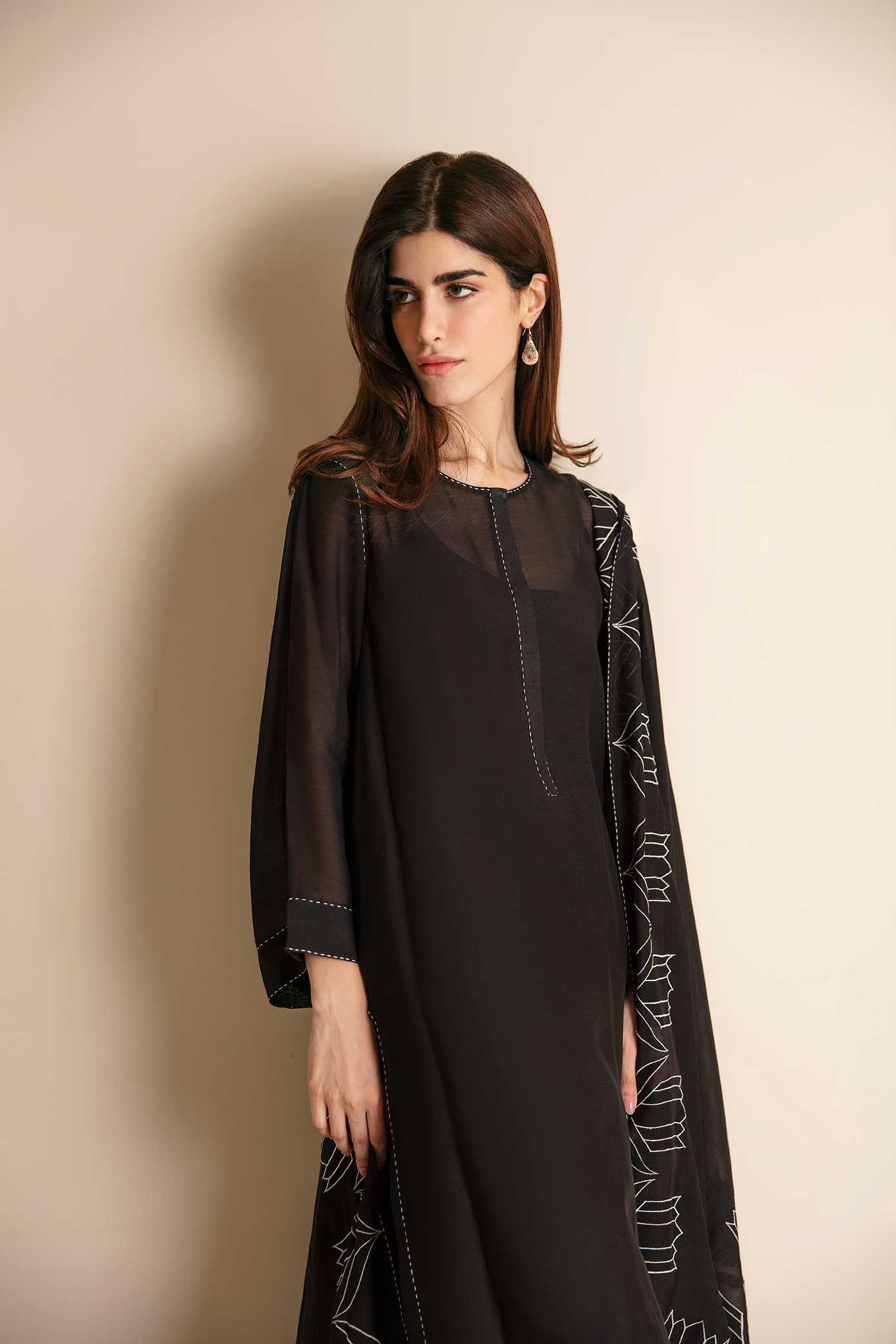 Delve into the allure of our subtle pure black silk lawn shirt - Midnight Grace - a masterpiece of precision and artistry. Crafted from the finest silk lawn fabric, this pret wear exudes sophistication with a touch of mystery. The accompanying dupatta, adorned with delicate white print details, gracefully enhances the ensemble's charm, with both the shirt and dupatta showcasing the exquisite Appliqué technique, a true testament to meticulous craftsmanship. Elevate your style game by pairing this exquisite piece with our raw silk skinny shalwar, a modern take on a classic silhouette.