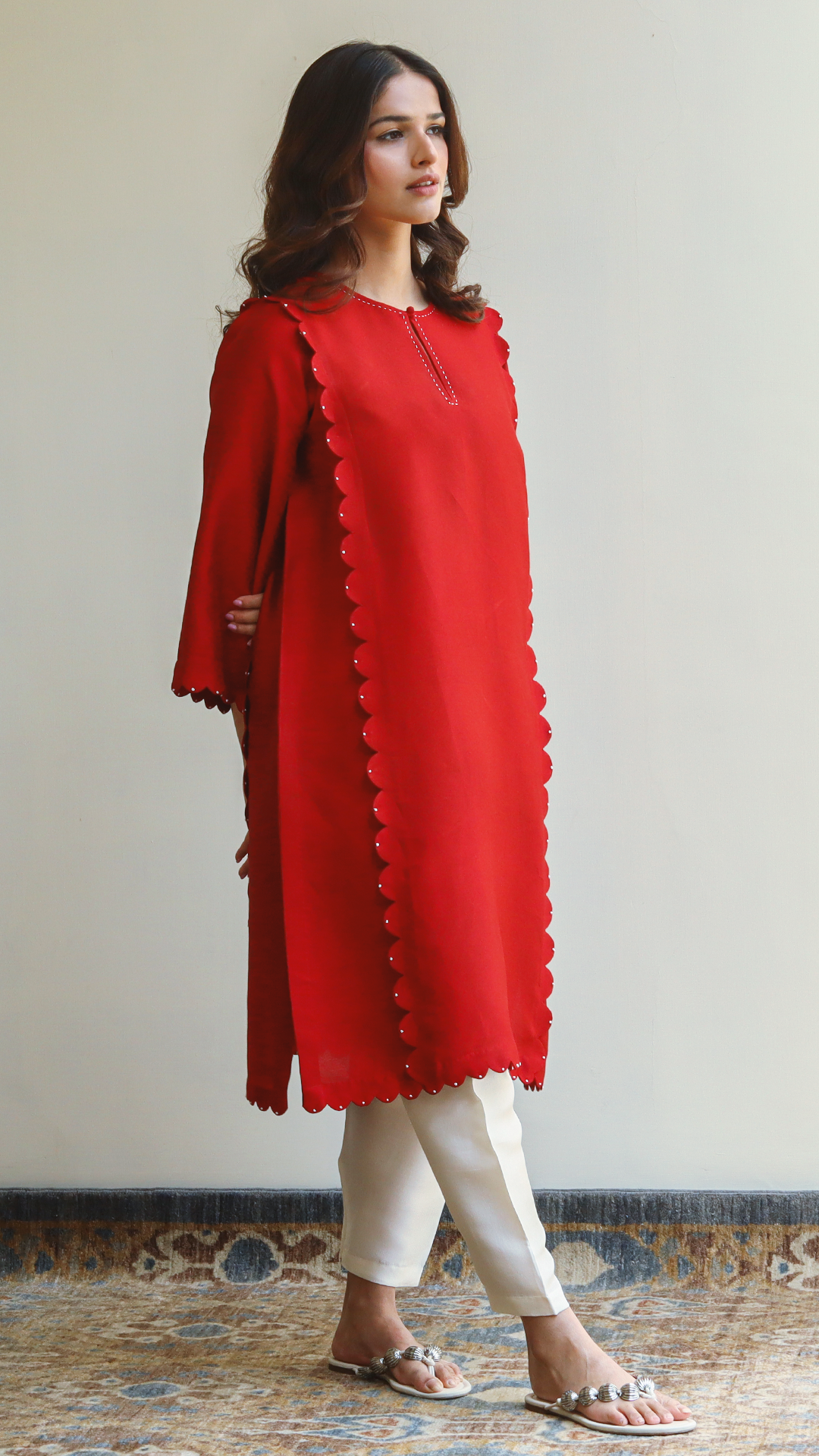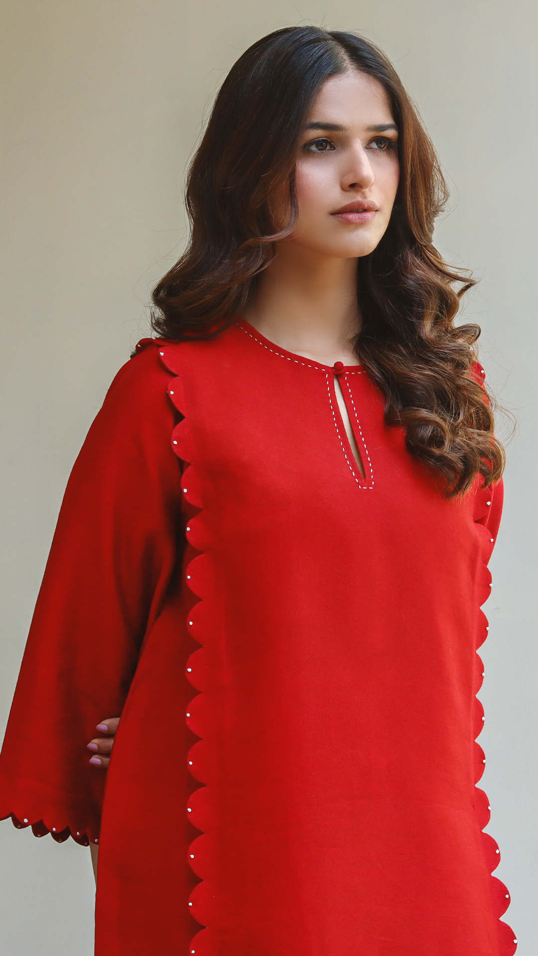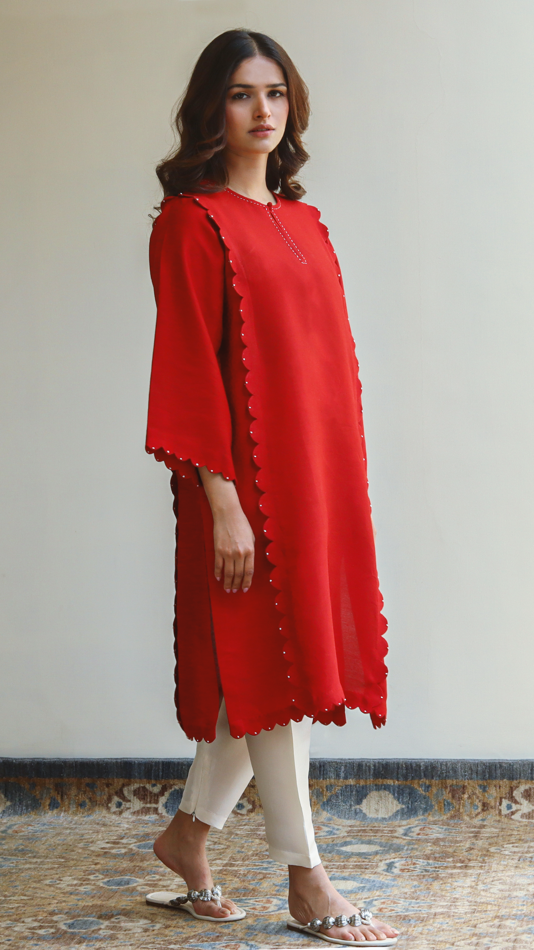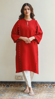 This vibrant deep red cotton net shirt showcases meticulous stitching style and is a must-have in your wardrobe.