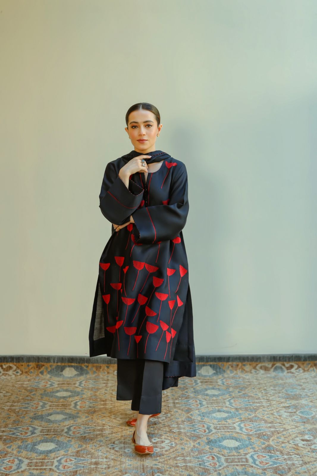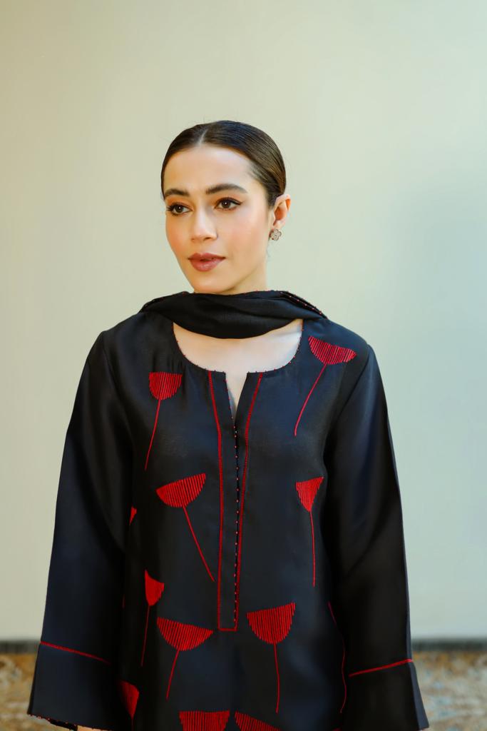 - Navy cotton-net Shirt and dupatta.